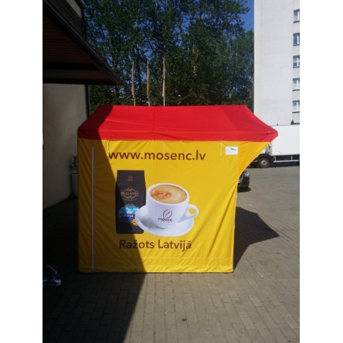 Pielāgota auduma griešanas tehnoloģija pieļauj optimālu auduma laukuma izmantošanu apdrukai. Telts auduma krāsas var kombinēt.