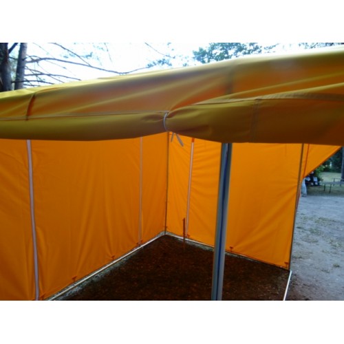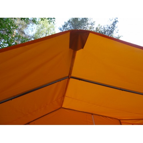 Telts audums ir izgatavots no augstas kvalitātes impregnēta poliestera auduma dubultā kārtā, padarot to ūdens necaurlaidīgu un ir pieejami ar lielu krāsu daudzveidību.
